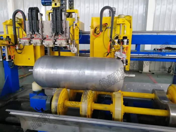氣瓶自動化無損檢測系統控制的高壓氣瓶超聲波檢測設備用于在線氣瓶的超聲波全自動探傷,探傷氣瓶規格為直徑